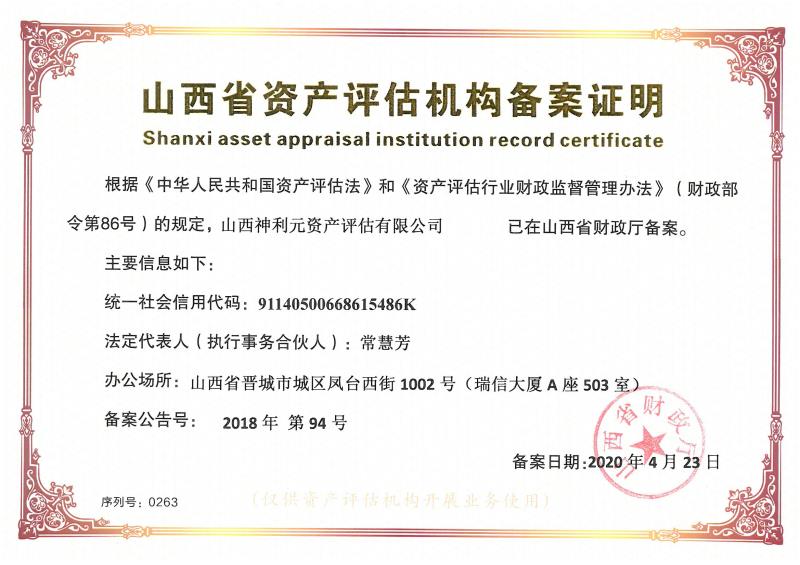 資產(chǎn)評(píng)估備案證明