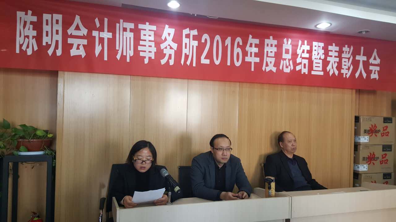 2月11日上午,陳明會(huì)計(jì)師事務(wù)所全體員工在會(huì)議室隆重召開公司2016年度工作總結(jié)暨表彰大會(huì),大會(huì)由史志忠經(jīng)理主持。