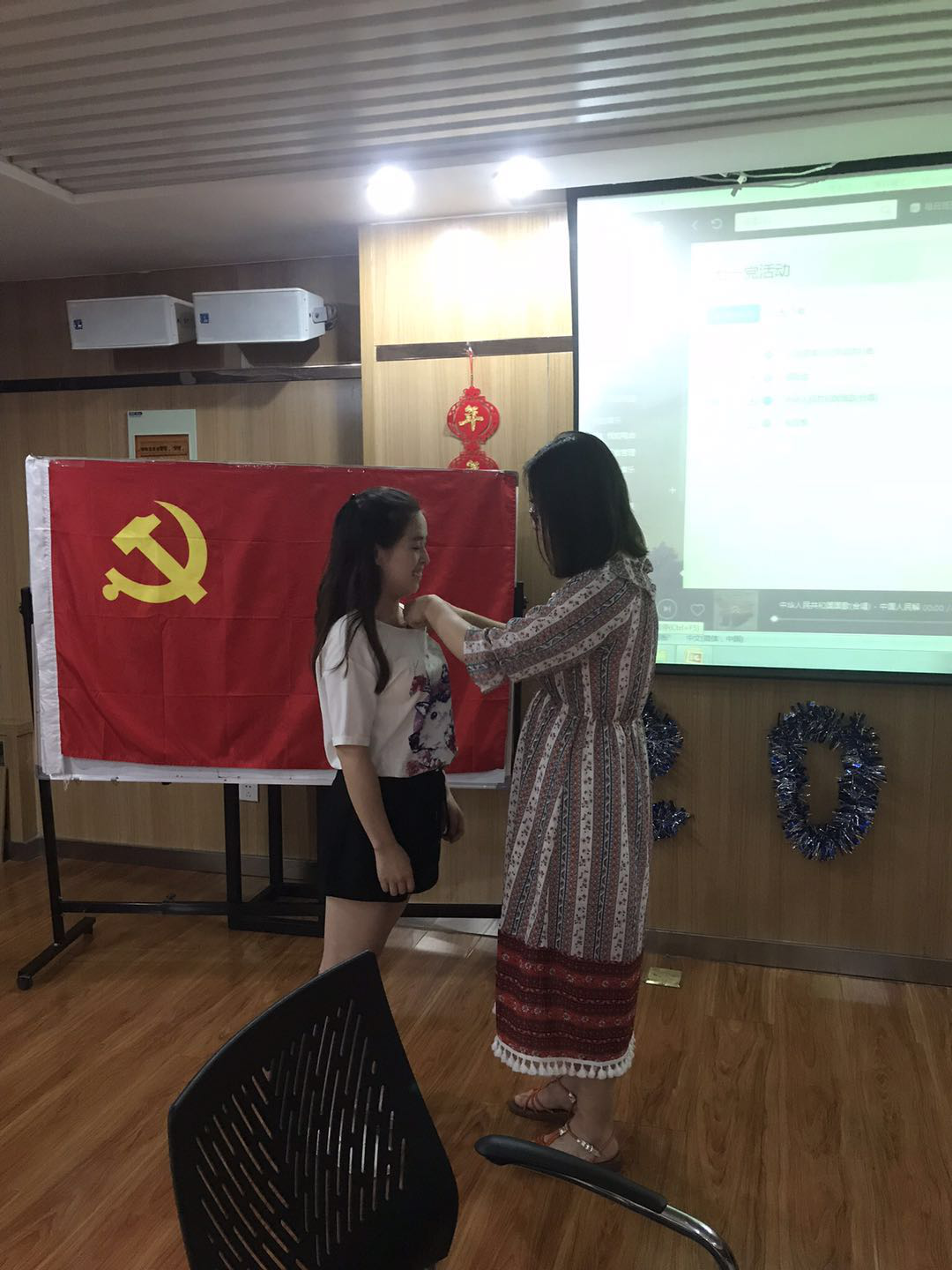 黨支部書記為黨員佩戴黨徽: