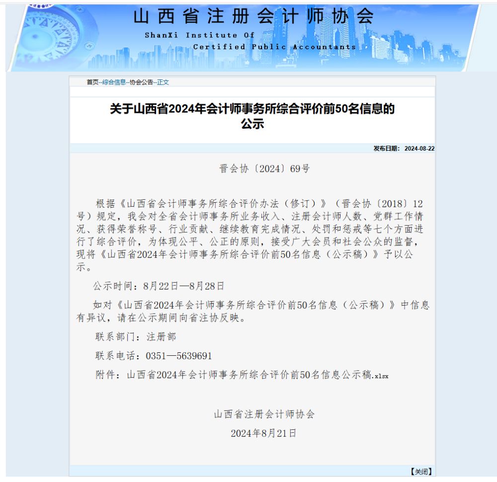 祝賀山西陳明會(huì)計(jì)師事務(wù)所有限公司獲山西省事務(wù)所綜合排名28名